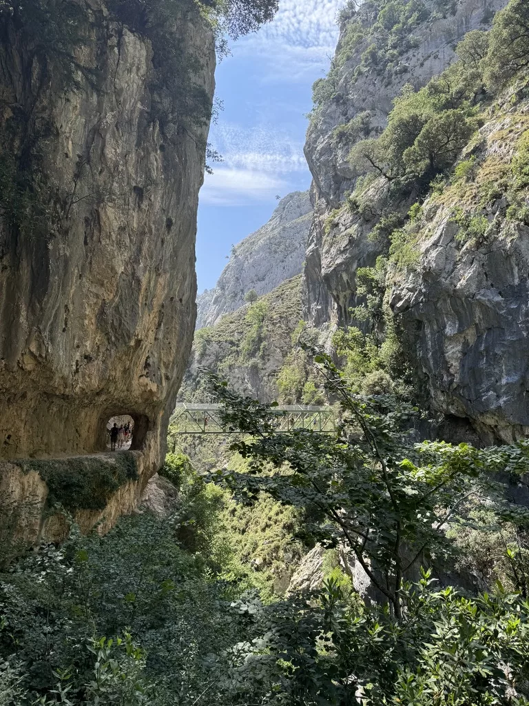Kondition: Die Ruta del Cares ist eine Wanderung mittleren Schwierigkeitsgrades, die jedoch für alle Wanderer mit normaler Kondition machbar ist. Der Weg ist gut markiert und erfordert keine spezielle Ausrüstung oder Kletterfertigkeiten. Dennoch solltest du dich darauf einstellen, dass die Strecke nicht flach ist und sich entlang steiler Hänge schlängelt. Man sollte unbedingt genügend Wasser uns Snacks mitnehmen, da es auf der Strecke weder Ortschaften noch Restaurants oder Cafes gibt. Noch dazu knallt die Sonne grade in der Hauptsaison auf den Weg und man ist dieser je nach Abschnitt voll ausgesetzt.